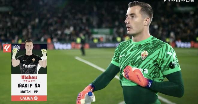 西甲第13輪,埃爾切主場2-2戰(zhàn)平皇家馬德里,此役奉獻4次撲救的埃爾切門將佩尼亞當選西甲官方全場最佳球員。